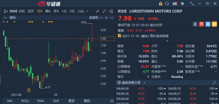 Lordstown Motors(RIDE)盘前涨6.89%,与富士康达成合作协议,将向富士康出售俄亥俄州工厂。