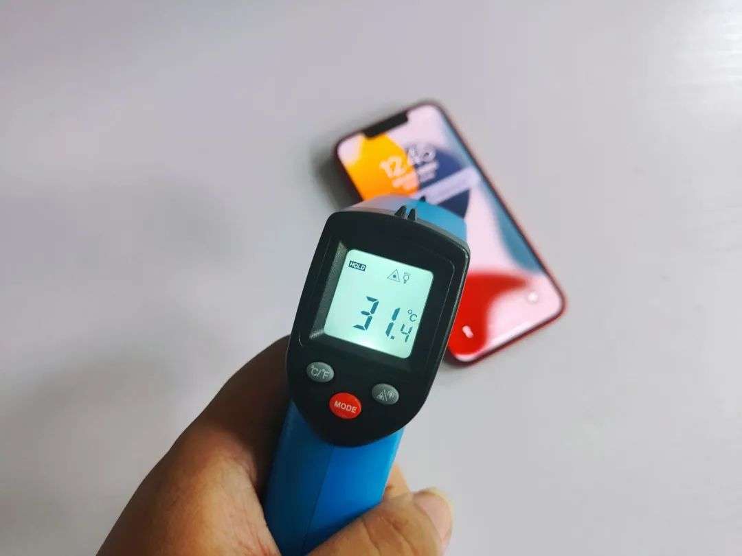 经过半小时的游戏体验后,我们手上这部iPhone 13 mini的屏幕最高温度达到43.7°C,背面最高温度达到45.8°C,中框最高温度达到44.4°C。iPhone 13的屏幕最高温度达到41.6°C,背面最高温度达到43.5.1°C,中框最高温度达到41.2°C。