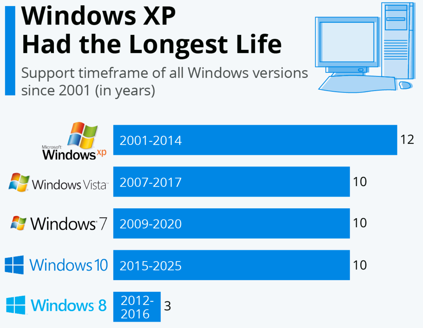 微软Windows 11系统于今日正式推送,符合条件的Windows 10 PC将可免费升级至Windows 11。数据显示,目前Windows 10正处10年支持期的中期,Windows XP则有长达12年的支持期,而Windows 8的基本版本仅提供了不到3年的官方支持。尽管苹果的macOS系统正在稳步追赶其竞争对手,但Windows仍然是全球领先的操作系统,截至2021年6月的市场份额为73%。