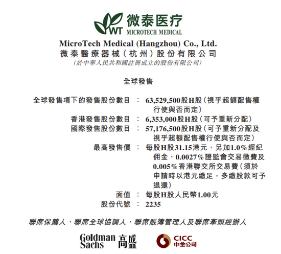 微泰医疗(02235.HK)发布公告,公司于10月6日-10月11日招股,全球发售63,529,500股,在港发售6,353,000股,国际发售57,176,500股,发售价区间为27.70-31.15港元/股,入场费3146.39港元。预期股份将于2021年10月19日(星期二)于联交所开始买卖。