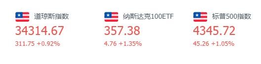 美股周二收高,科技股领涨。道指涨311.75点,或0.92%,报34314.67点;纳指涨178.35点,或1.25%,报14433.83点;标普500指数涨45.26点,或1.05%,报4345.72点。主要股指部分挽回周一跌幅。市场继续关注美国债务危机,美财长耶伦警告称若美国债务违约,将引发另一场“大萧条”。