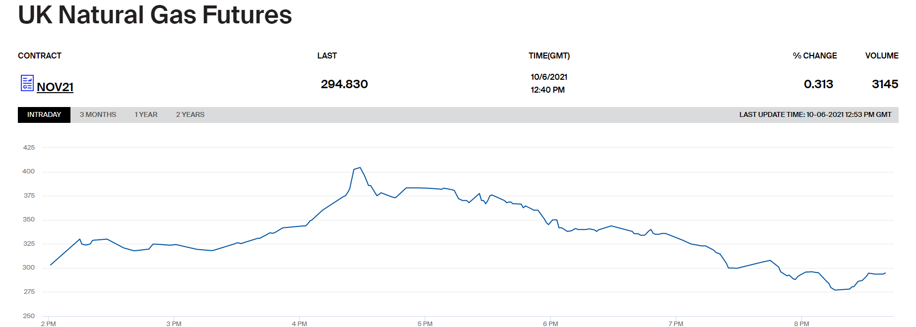 英国天然气11月份合约期货涨0.31%,报收294.83便士/千卡,盘中一度大涨39%至涨停。