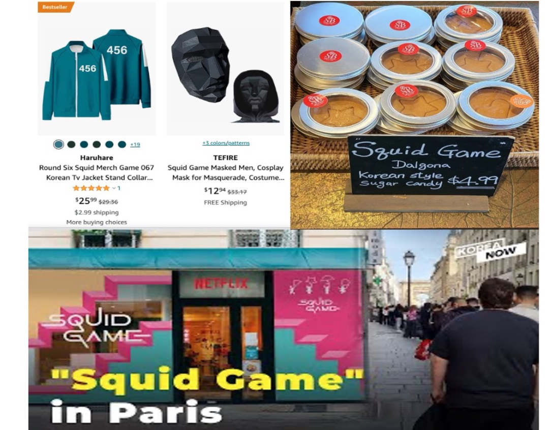 在法国巴黎,Netflix甚至还开了一家《鱿鱼游戏》快闪店,店里的装修元素照搬剧集,工作人员换上了监督员桃红色的制服和面具,还提供了戳椪糖和摔红蓝卡牌的剧中游戏,如果参与者能够挑战成功的话,既可以获得Netflix一个月免费会员。