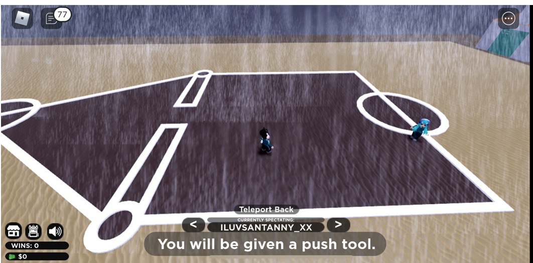 最后顺利通过玻璃桥的人进入到终极挑战鱿鱼游戏,在剧中这一关“贴身肉搏”的设定让人略有一些失望,但在Roblox里,这一关变成了紧张的追逐游戏,谁能先追到其他人并把他们推到界外就能最终赢得比赛。