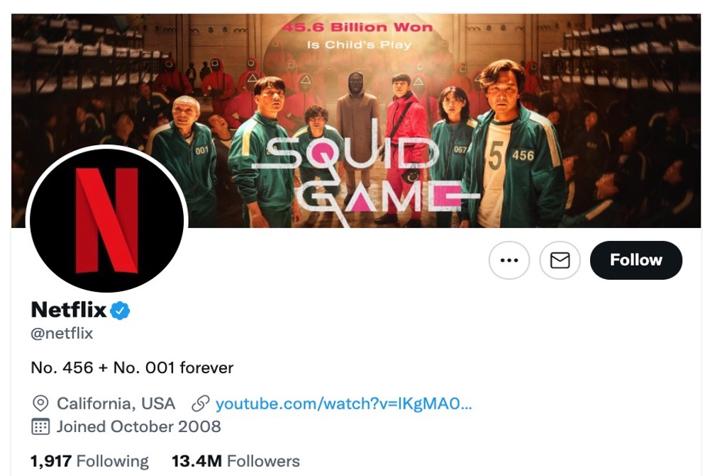 最近《鱿鱼游戏》也成为了Netflix近期剧集宣传的重中之重,不仅把自家的官方Twitter、Facebook等账号头图全部换成了《鱿鱼游戏》剧照,还时不时用一些《鱿鱼游戏》的剧照来玩梗。