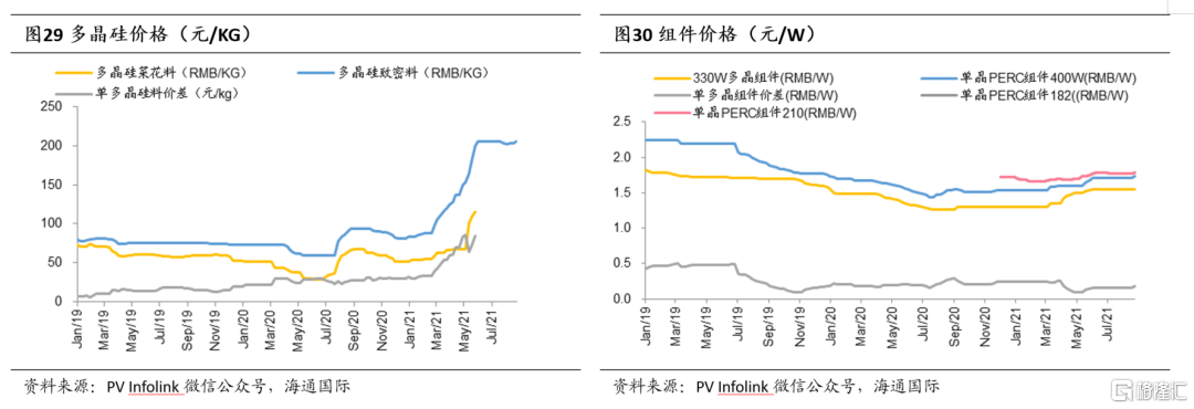 根据PV Infolink统计,多晶硅价格在6月左右涨价趋势明显放缓,价格开始趋稳,组件价格也在此基础之上趋稳,我们认为上半年价格快速上涨,对于地面电站的开发进程影响较大,在价格趋稳后需求释放将明显好转。