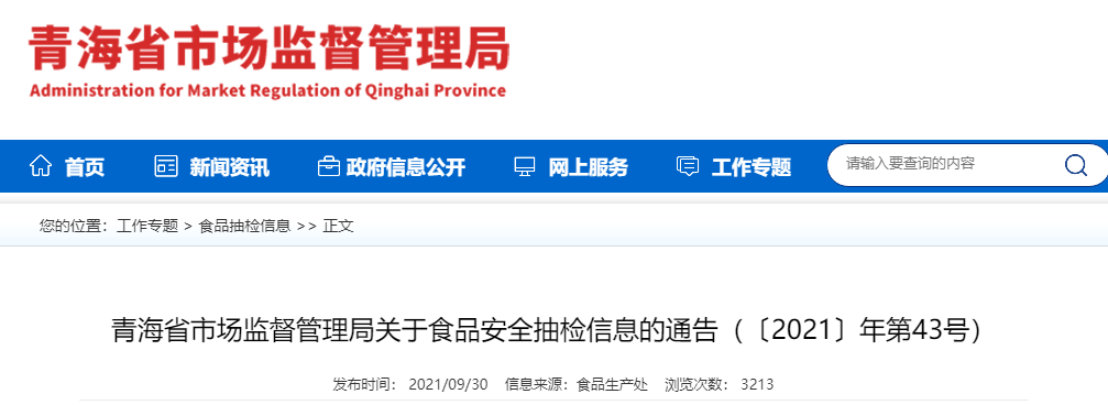 中国质量新闻网讯 日前,青海省市场监督管理局发布关于食品安全抽检信息的通告(〔2021〕年第43号)。通告称,近期,该局在组织开展的2021年青海省“你点我检”专项监督抽检(第一阶段)任务中,抽检了饮料46批次,经检验全部合格。