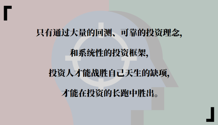只有通过大量的回测、可靠的投资理念,和系统性的投资框架,投资人才能战胜自己天生的缺项,才能在投资的长跑中胜出。