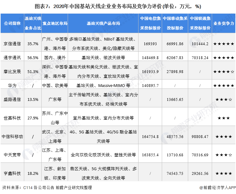 4、中国基站天线行业企业布局及竞争力评价