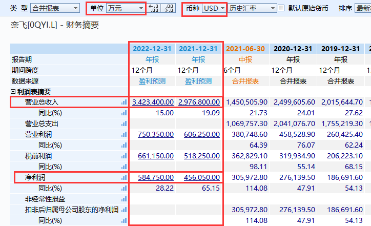未结束的2021年和还未到来的2022年,奈飞均预测业绩盈利 图片来源 wind截图