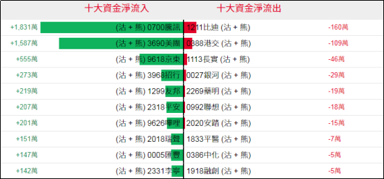 淡仓(认沽证及熊证)方面,上周五腾讯、美团相关淡仓单日分别录得约1,831万、1,587万港元资金净流入,剩余个股相关淡仓净流入规模普遍偏小;个股相关淡仓净流出资金则普遍规模较小。