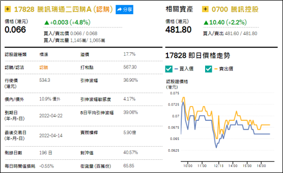 1、强势轮证:腾讯瑞通二四购(17828.HK),上周五上涨4.8%;