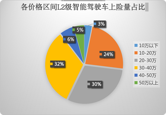 从价格来看,相对而言,价格越高,L2级智能驾驶车型上险量占比相对较高。从上险数据来看,与7月不同, 8月30-40万价格区间上险量超过 20-30万元,占比32%,跃升第一的位置。可以看到,购买30-40万车型用户,对于L2级自动驾驶需求比较旺盛。