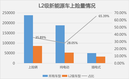 赛博汽车基于上险量数据计算发现,今年8月,L2级智能网联车(即:具备自适应巡航或全速自适应巡航,同时又配备车道保持辅助系统的车型。)上险量为85616辆,高于7月的76200辆;包括52861辆纯电动车型和32754辆插电式混动车型。