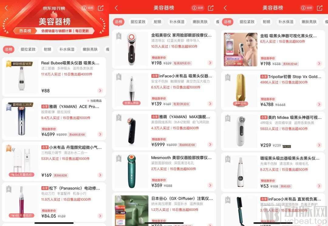 (京东平台上的美容器热销榜单 截图日期:10月9日)