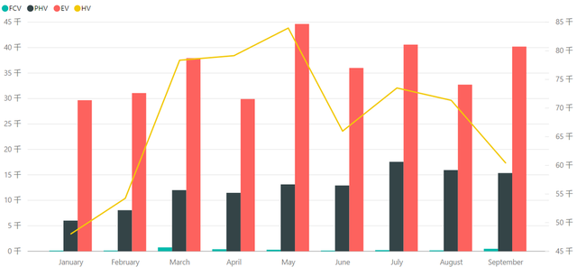 不过9月美国新能源车销售数据则为5.55万台,同比增长了55%左右,比8月份的4.86万辆也要高出一截。1-9月,总的新能源汽车销量达到43.5万台,保持了高增长。