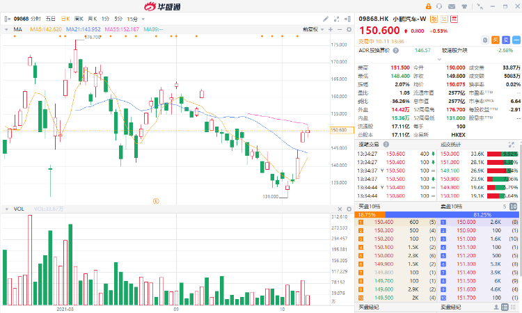 维持小鹏汽车-W跑赢大市评级,目标价为215港元。截止发稿,小鹏汽车-W上涨0.5%报150.60港元。