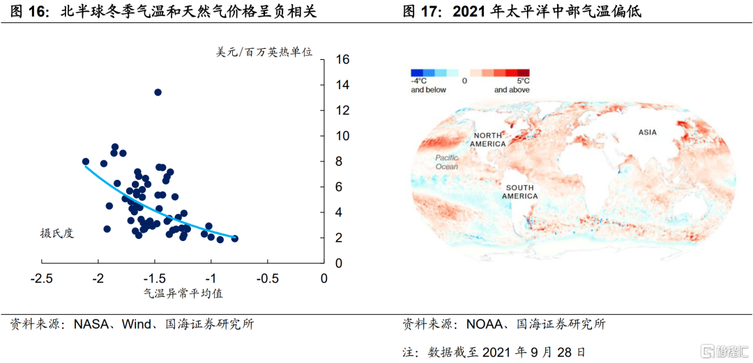 (2)今年可能发生的极寒气候也将对天然气价格产生相应的推动作用。一般而言,当中东部太平洋的海水温度偏低时,将有可能造成“拉尼娜”现象。“拉尼娜”气候的形成将会使得北半球出现“南旱北涝”,更频繁的台风活动以及冬日的极寒天气。