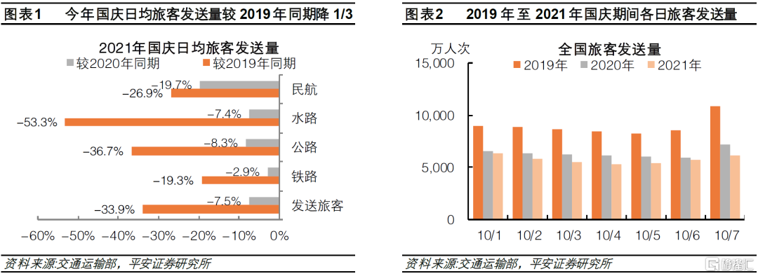 根据交通运输部数据,今年10月1日至7日,全国预计共发送旅客4.03亿人次,日均5750万人次,比2019年同期日均下降33.9%,比2020年同期日均下降7.5%。和2019年同期相比,今年国庆期间铁路、公路、水运和民航四种主要交通方式的日均旅客发送量,均有较大幅度降低。