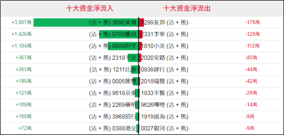 淡仓(认沽证及熊证)方面,周一美团、腾讯、阿里相关淡仓单日分别录得约3,807万、1,426万、1,104万港元资金净流入,剩余个股相关淡仓净流入规模普遍偏小;个股相关淡仓净流出资金则普遍规模较小。