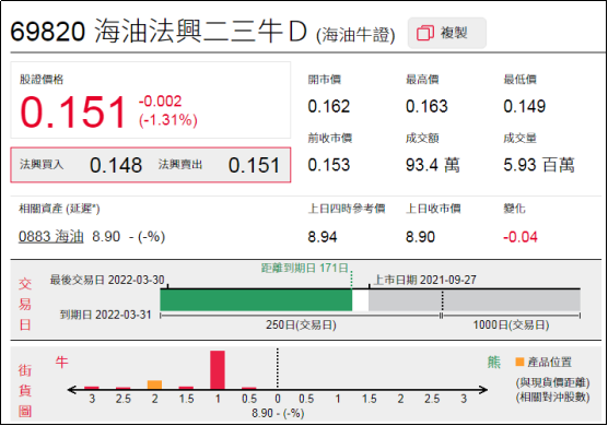 2、看错方向:海油法兴二三牛(69820.HK),周一下跌1.31%。