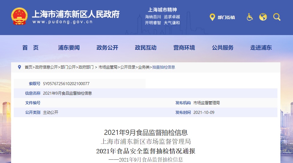 中国质量新闻网讯 近日,上海市浦东新区市场监督管理局通报2021年9月食品监督抽检信息,涉及32大类食品。其中,抽检饮料32批次,不合格样品数为0批次,样品不合格率为0%。