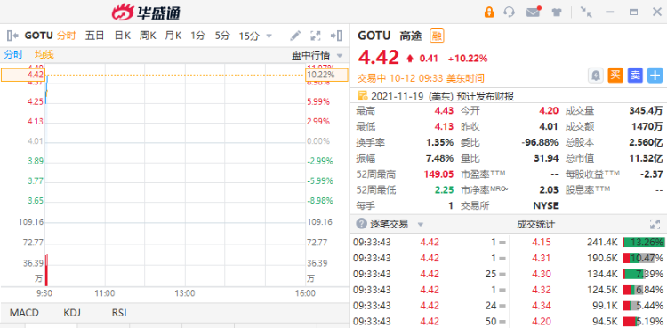 华盛资讯10月12日讯,热门中概教育股早盘多数走高,截至发稿,高途(GOTU)、掌门教育(ZME)涨超10%,好未来(TAL)涨超7%,51talk(COE)涨超4%,新东方(EDU)涨超3%;精锐教育(ONE)停牌。