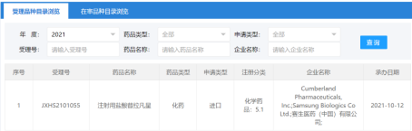 10月12日,国家药监局官网显示,赛生药业/Theravance注射用盐酸替拉凡星(曾用名:特拉万星)在国内申报上市。