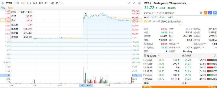 10月11日,该生物技术公司的股价在当日早上宣布恢复后,在盘前交易中已跃升近100%至35美元左右。