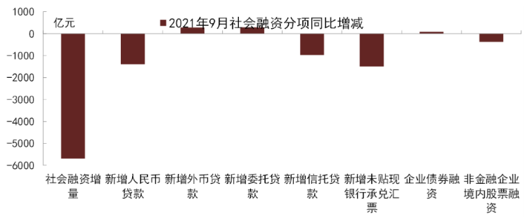 图表1:9月社融各分项同比增减