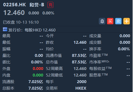 根据发行价,和誉医药市值为87.53亿港元。因台风影响以及重阳节假期,港股于昨日和今日休市,该股未有二级市场价。