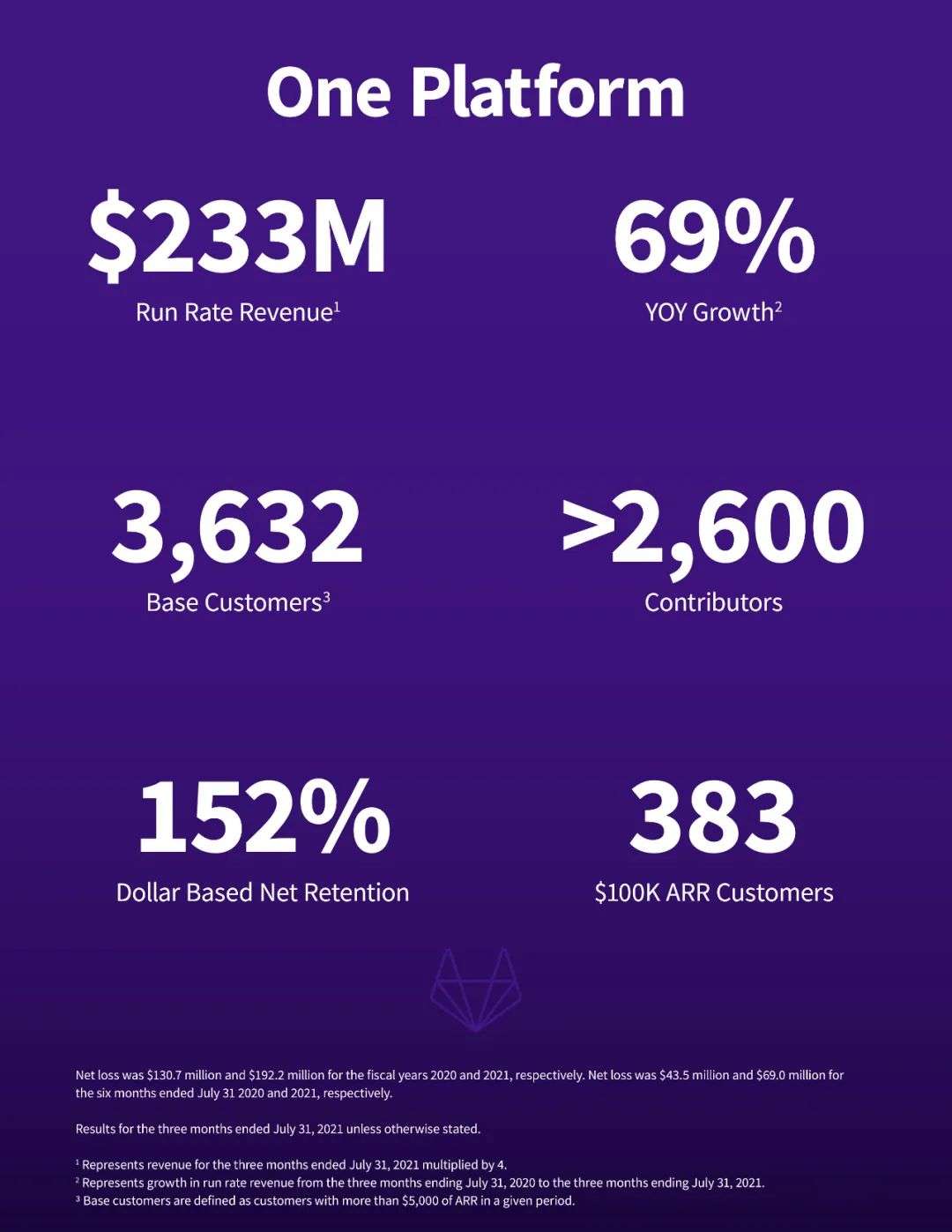 据招股文件显示,GitLab在今年2月1日至7月31日期间收入1.08亿美元,净亏损6900万美元,相比之下,去年的同期的收入为6400万美元,亏损4400万美元。