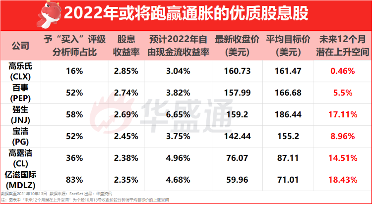 以下是McMahon认为或将在2022年跑赢通胀的股票名单。