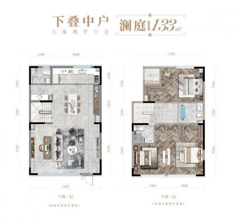叠拼,130-135 m,上、下叠,总价230-340万;