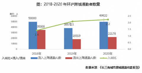 根据同济大学建筑与城市规划学院发布的《2020长三角城市跨城通勤年度报告》显示,“持续观测长三角跨城通勤规模及人口流入流出特征,发现上海与周边城市之间的通勤联系呈现明显的双向特征,且正向的入出比体现了上海对周边城市就业的吸引力。叠加国家政策引导及愈加紧密的城际通行,双城生活模式将成为常态。”