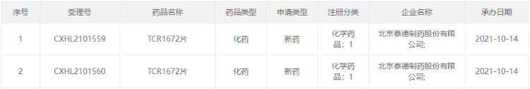 10 月 14 日,中国生物制药子公司北京泰德的 TCR1672 片首次在国内申报临床。这是该公司自主研发的一款二代高选择性 P2X3 受体拮抗剂,9 月 8 日刚刚向美国 FDA 递交 IND 申请并获受理。