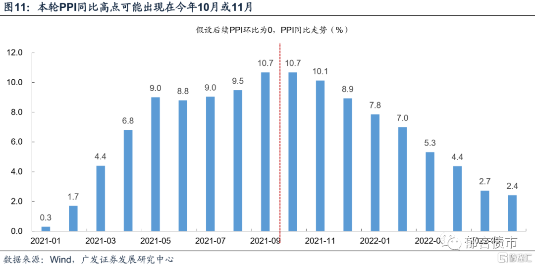 因而需要关注PPI何时见顶。本轮PPI同比高点可能出现在今年10月或11月。确认了PPI的高点之后,长端利率可能重回下行。