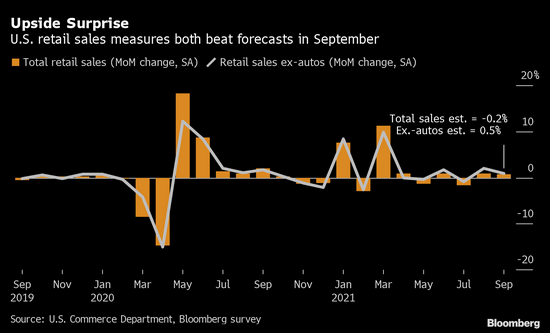 零售销售数据显示,汽车和零部件经销商销售额继一个月前下降3.3%后,9月份增长0.5%,反映了供应链瓶颈让供应受限并推高价格。