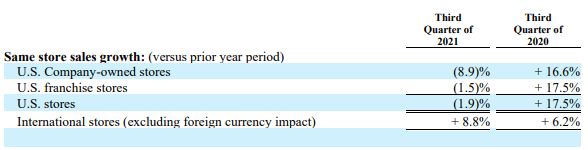 该公司的国际业务继续保持着令人印象深刻的增长势头,国际同店销售额同比增长8.8%,有Barron's作者表示这一数据已连续111个季度录得同比增长。该公司还报告称,本季度新开323家门店,其中45家在美国,278家分布在全球各国。