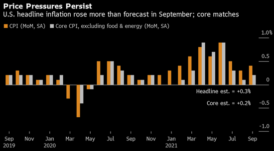 美国政府周三公布,9月消费者价格指数同比上涨5.4%,创下2008年以来的最大涨幅。