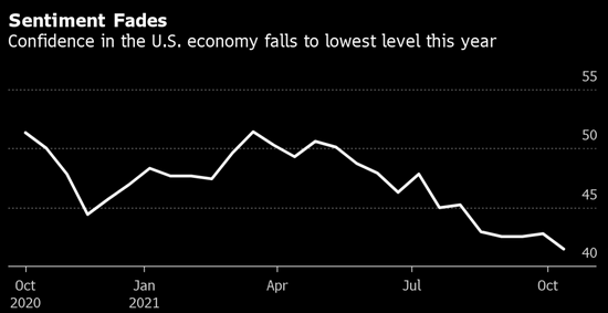 密歇根大学消费者调查报告显示,只有44%的美国人预计自身财务状况会好转,为七年来最低。