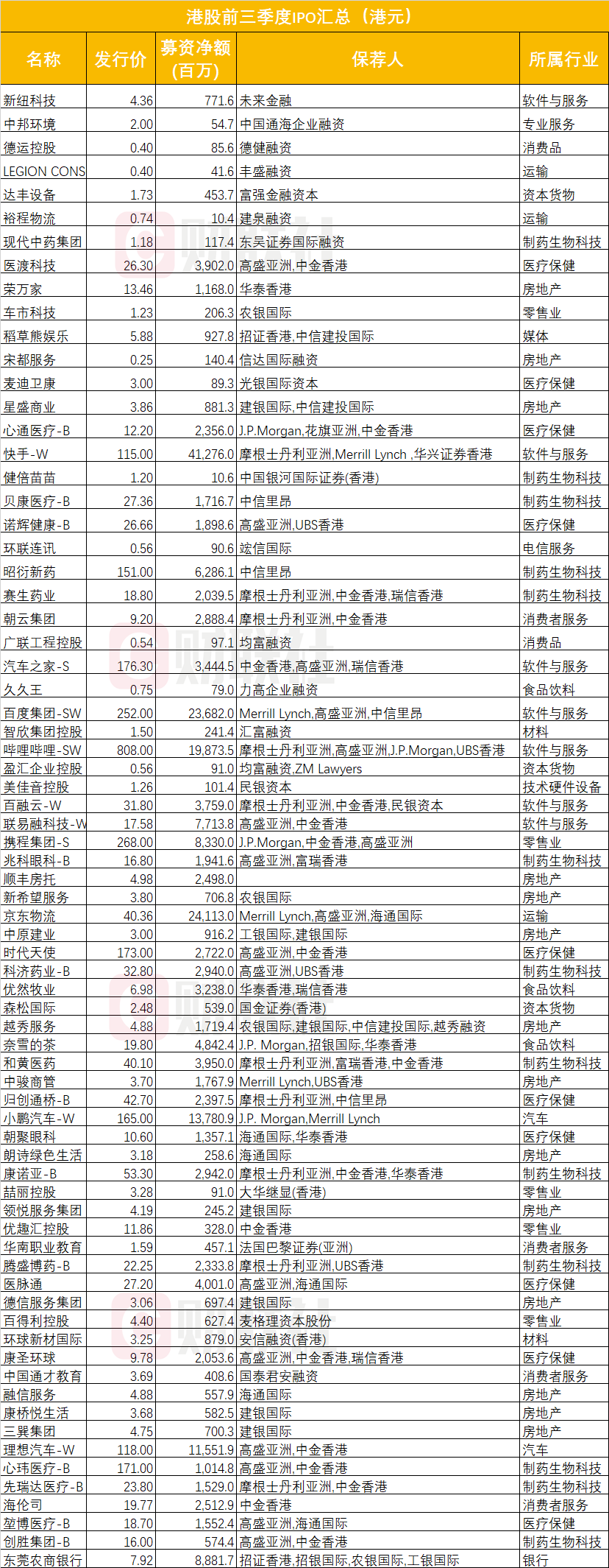 行业分布看,医疗股仍是港股新股主力,其中,前三季度未盈利生物医药B股有12家通过港交所上市。