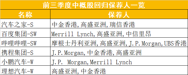 另外,2021年前三季度还有6家中概股回归,他们分别为汽车之家、百度、哔哩哔哩、携程、小鹏汽车和理想汽车。而在2020年全年,共有9家中概股回归港股。香港一家本地券商表示,随着美国收紧中概股上市审核,及港股上市制度不断改革,未来会有更多中概股回归港股,及更多中资企业选择在港股上市。