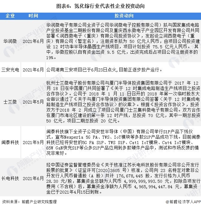 氮化镓行业代表企业最新投资动向