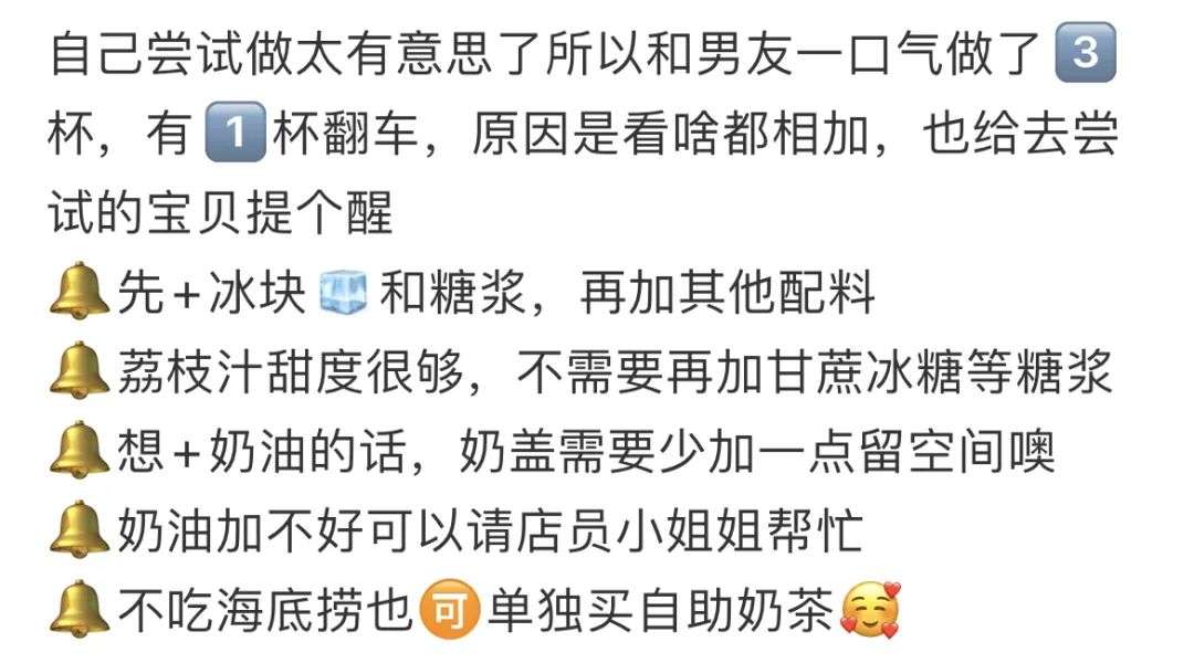 小红书上,除海底捞外,各地陆续出现自助奶茶类型门店。