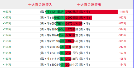 上周五南向资金净买额约2.07亿港元。其中,腾讯控股、比亚迪股份、吉利汽车、安踏体育、舜宇光学科技获资金净买入追捧;美团、思摩尔国际、小米集团、中芯国际、药明生物、长城汽车录资金净卖出。