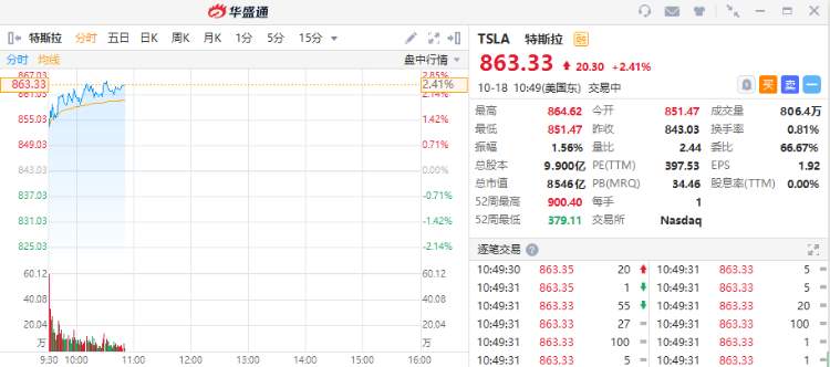 截至上周五收盘,特斯拉股价报843.03美元/股,近5个交易日上涨7.3%,自5月19日以来已飙升近 50%。