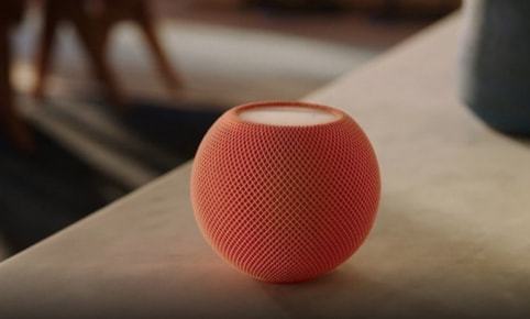 此次 HomePod mini 增加了黄色、橙色和蓝色,并且给每个元素都注入了色彩,包括精美的织网表面,彩色触控板,音量键和编织线等细节。