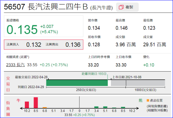 1、强势轮证:长汽法兴二四牛(56507.HK),周一收涨5.47%;