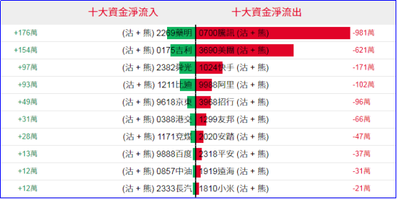 淡仓(认沽证及熊证)方面,周一药明生物、吉利相关淡仓路少量资金净流入部署;腾讯、美团、快手等相关淡仓录资金净流出套现。